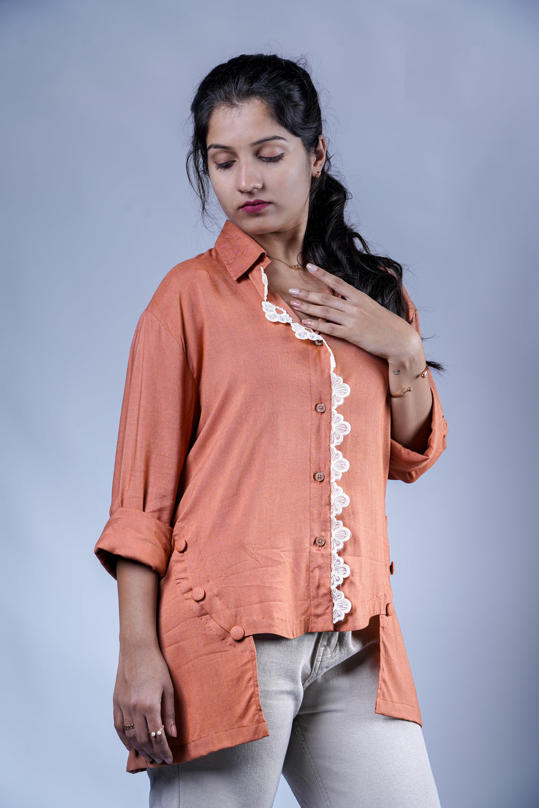 Trevae’s Melon Lace Reverie High-Low Shirt